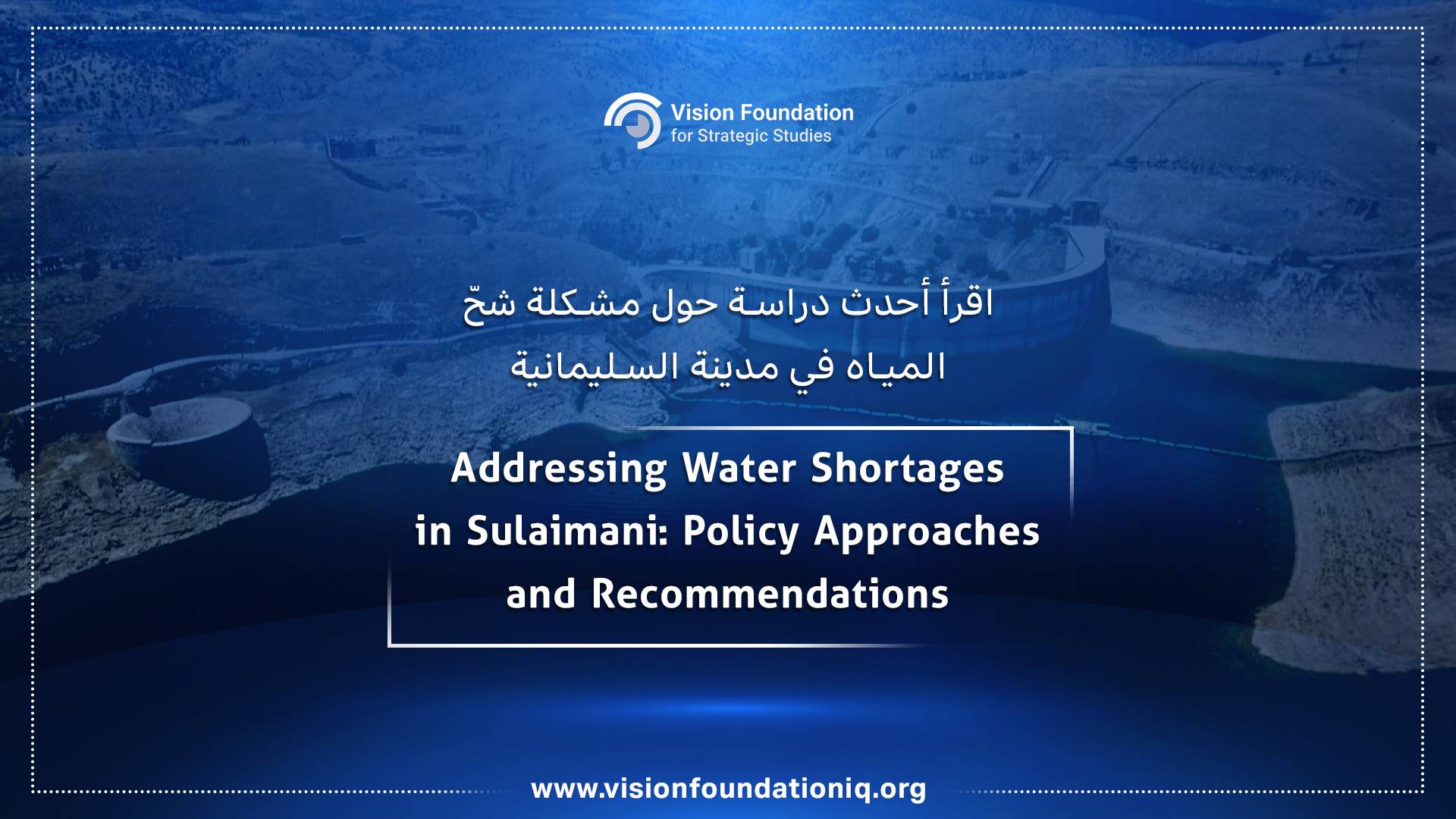 قامت مؤسسة رؤية للدراسات الاستراتيجية بنشر أحدث دراسة تتناول سبل معالجة مشكلة شحّ المياه في مدينة السليمانية، بعنوان (Addressing Water Shortage in Sulaimani: Policy Approaches and Recommendation).